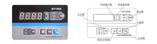 YGC-BT100S調(diào)速型蠕動泵功能及特點: • 4位LED數(shù)碼管顯示轉(zhuǎn)速和工作模式; • LED指示燈顯示正反轉(zhuǎn),內(nèi)控、外控、腳踏開關(guān)等工作狀態(tài); • 面膜按鍵操作; • 具有啟停、正反、全速,調(diào)速、狀態(tài)記憶(掉電記憶)等功能; • 簡易分裝控制,實現(xiàn)重復(fù)傳輸定量液體的功能; • 轉(zhuǎn)速分辨率0.1-100轉(zhuǎn)/分鐘時為0.1;100-150轉(zhuǎn)/分鐘時為1; • 不銹鋼外殼抗酸堿,耐腐蝕; • 大扭矩輸出,可以安裝不同泵頭,實現(xiàn)不同泵頭于驅(qū)動器組合; • 內(nèi)部結(jié)構(gòu)采用雙層式隔離設(shè)計,電路板加噴三防漆工藝,達(dá)到防塵防潮效果; • 抗干擾特性強,寬電壓設(shè)計,適用于復(fù)雜的供電環(huán)境; • 外控高低電平控制啟停,正反,簡易分裝,光耦隔離;外控模擬量調(diào)節(jié)轉(zhuǎn)速; • RS485通訊,支持MODBUS協(xié)議,方便與各種控制設(shè)備連接; • 可實現(xiàn)外部腳踏開關(guān)控制起;驎r間分配器控制起停,實現(xiàn)簡易分配灌裝功能;